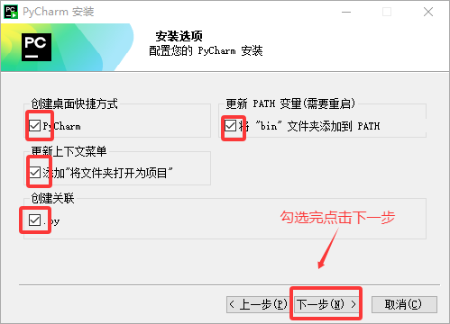 - 勾选选项点击下一步。