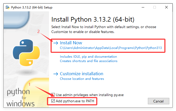 - 双击下载的.exe 安装包,勾选底部的 “Add Python x.x to PATH”(关键步骤,确保 Python 可在命令行直接调用)。