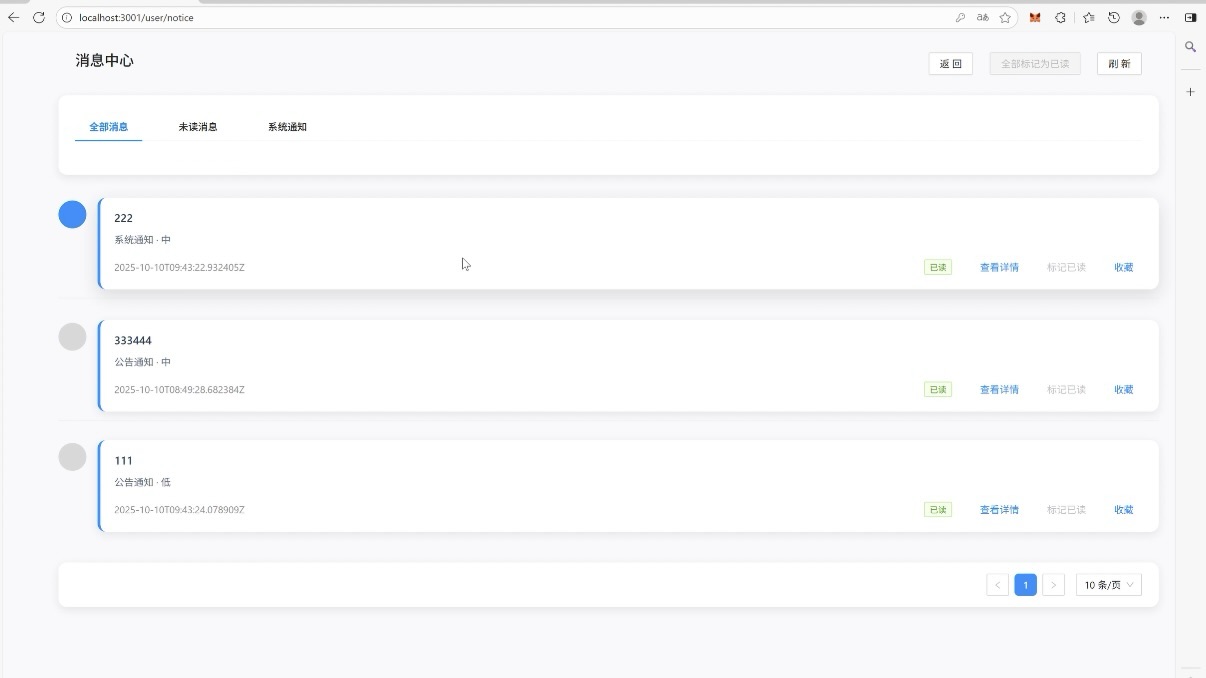 系统消息的 “集散站”,分类推送任务完成提醒、版本更新通知、权限变更提示等内容,未读消息会标注提醒,确保用户不遗漏关键信息,提升操作效率。