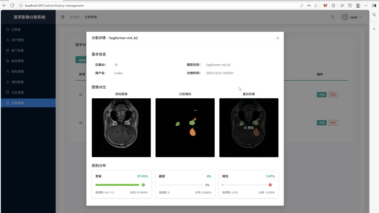 分享一套落地性极强的医学影像分割系统,从用户端到管理端 14 个核心框架逐一拆解,搭配截图更清晰,不管是做毕设、学 AI 落地,还是梳理系统设计逻辑,都能直接参考!