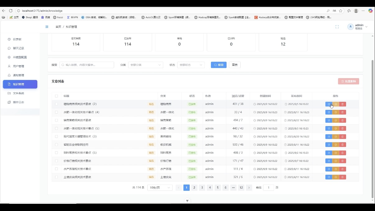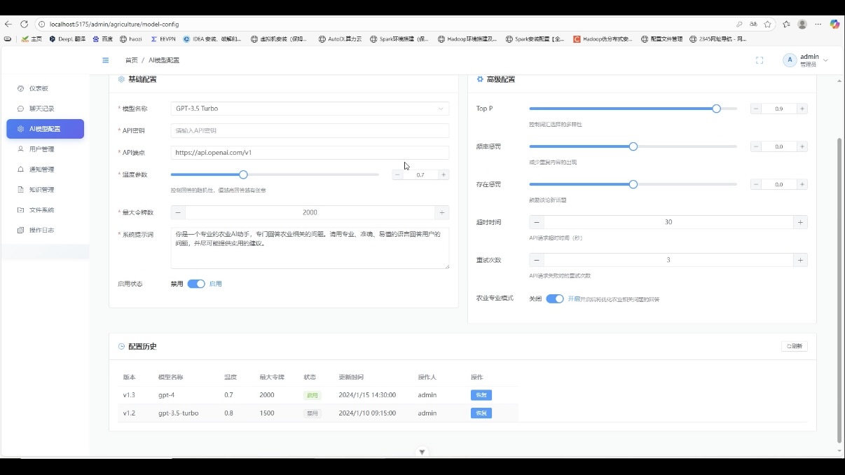 今天分享一套农业大模型问答系统的核心截图拆解,从前端到后端,每个功能模块都对应具体技术栈,截图直观呈现落地效果!