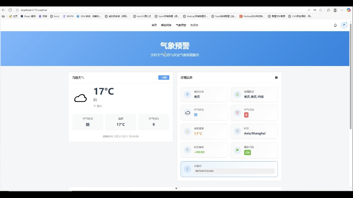 - 气象预警:核心依赖 Django Channels 实时推送服务,截图中预警信息的主动弹窗与消息通知,体现了 WebSocket 在实时消息场景的优势,可直接参考到需要实时提醒的毕设功能中。