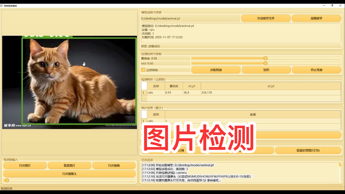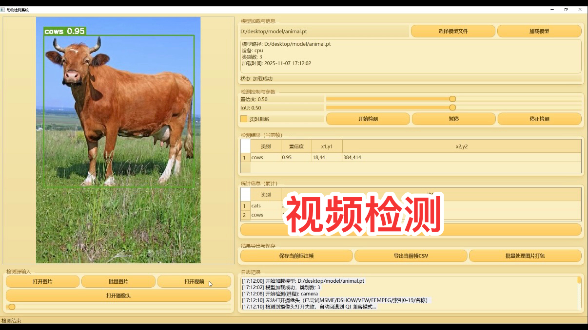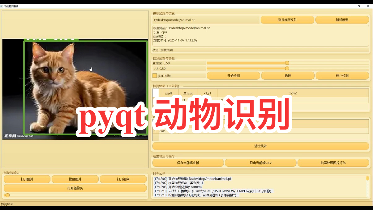 本文介绍一款功能完善、稳定性强的动物识别桌面应用,基于 PyQt5 构建交互界面,结合 OpenCV 与深度学习检测框架,实现图片 / 视频 / 摄像头多源输入的动物识别需求。系统支持自训练权重导入,具备自定义参数调节、检测结果可视化、数据导出与批量处理等核心功能,通过多后端适配、进程隔离等技术优化,确保在 Windows 环境下高效稳定运行,可作为计算机视觉方向毕业设计或技术实战项目参考。