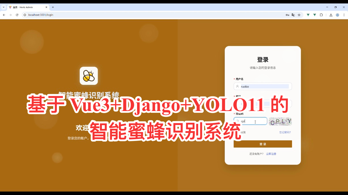 本智能蜜蜂识别系统通过 “Vue3+Django+YOLO11” 的技术组合,实现了 “高精度识别”“实时告警”“数据可视化” 等核心功能,同时采用模块化、前后端分离的架构设计,保障系统的可扩展性与可维护性。