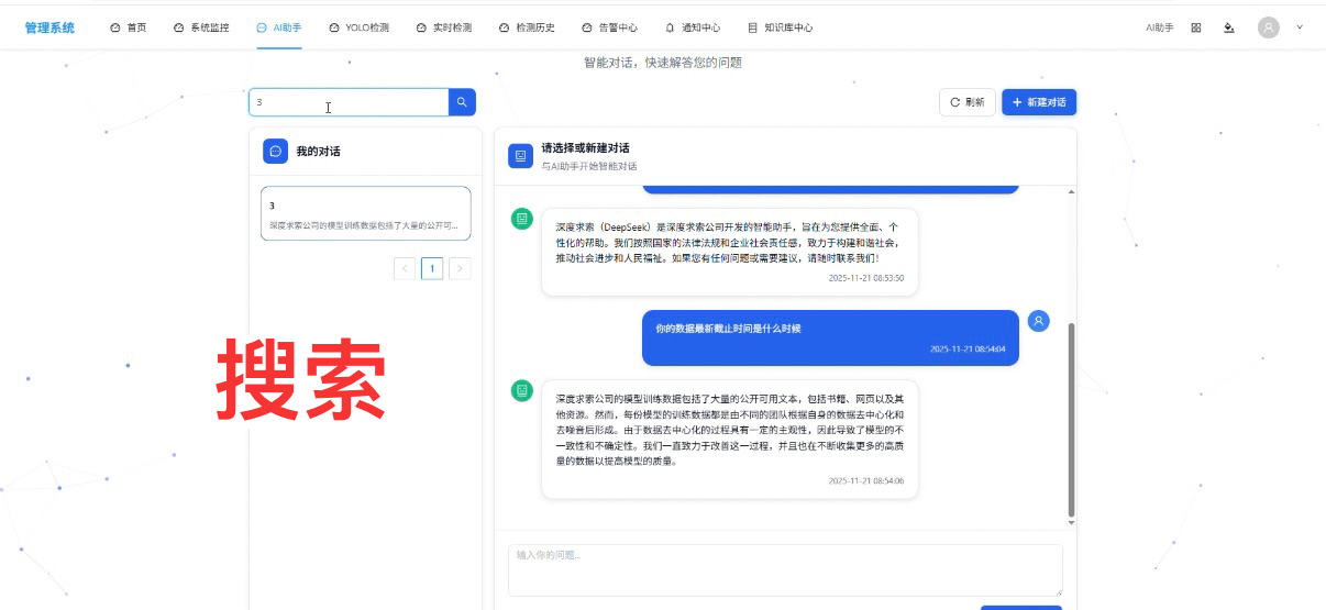 - 操作步骤 1(搜索):在顶部搜索框输入 “3”,系统快速筛选出名称含 “3” 的会话(即 “123” 会话);