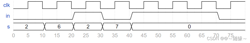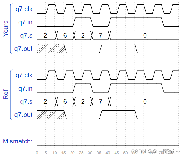 Write a testbench that instantiates module q7 and generates these input signals exactly as shown in the waveform above.
