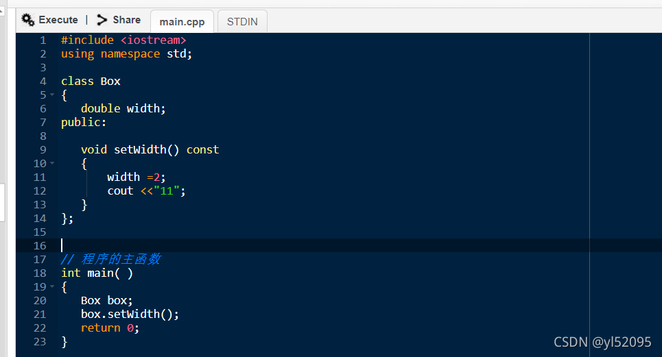 1.这里注意的是,类的成员函数如果加了const,就表明该函数不能对该类的成员数据进行任何的修改,一旦修改就会报错,称之为常函数。反之可以修改。如下