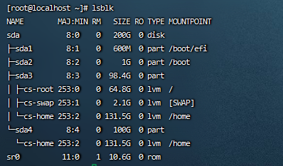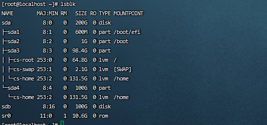 4:打开虚拟机,查看现在的硬盘信息。能看到一个新的硬盘sdb大小100GB。