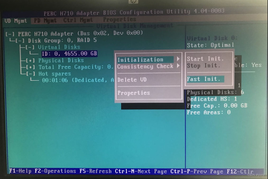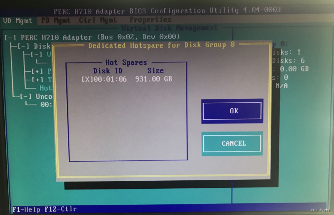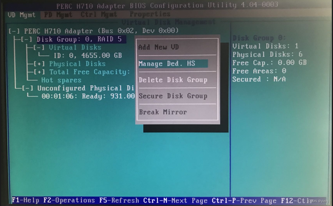 5: 在Disk Group:0,RAID 5按F2选择Manage Ded.HS。做热备盘。