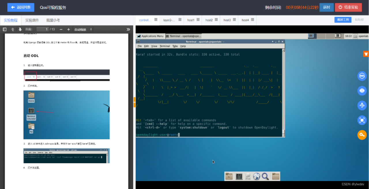 - 进入sdn-qos目录,并执行tar-zxvf解压karaf压缩包