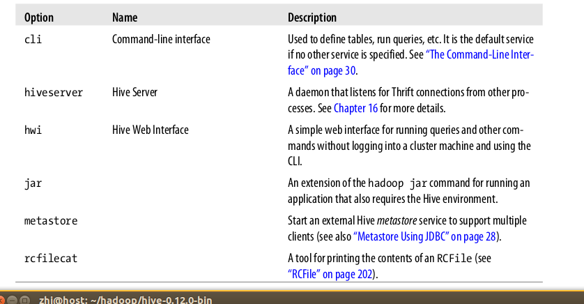 #hive --service service-name