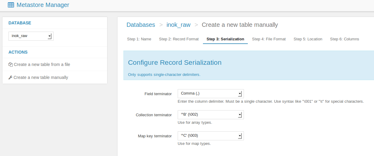 I want to import data with tree fileds from mysql table to hdfs with hive metastore integaration. I want to the data format stored in hdfs likes