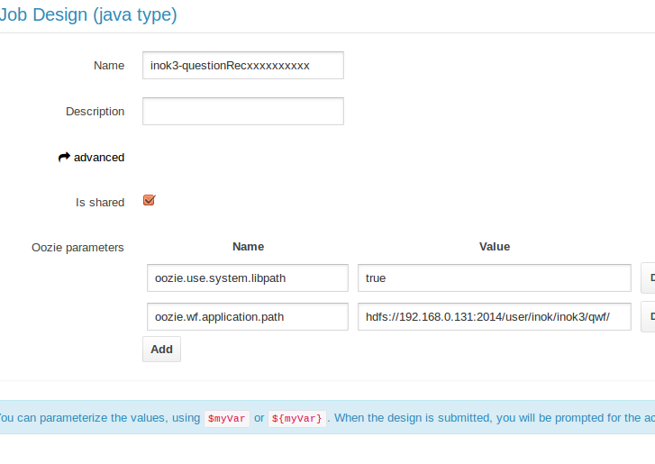 For Map-Reduce jobs (not including streaming or pipes), additional jar files can also be included via an uber jar. An uber jar is a jar file that contains additional jar files within a "lib" folder (see Workflow Functional Specification for more information). Submitting a workflow with an uber jar requires at least Hadoop 2.2.0 or 1.2.0. As such, using uber jars in a workflow is disabled by default. To enable this feature, use the oozie.action.mapreduce.uber.jar.enable property in the oozie-site.xml (and make sure to use a supported version of Hadoop).