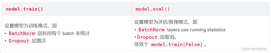 如果模型中有BN层(Batch Normalization)和Dropout,需要在训练时添加model.train()。model.train()是保证BN层能够用到每一批数据的均值和方差。对于Dropout,model.train()是随机取一部分网络连接来训练更新参数。