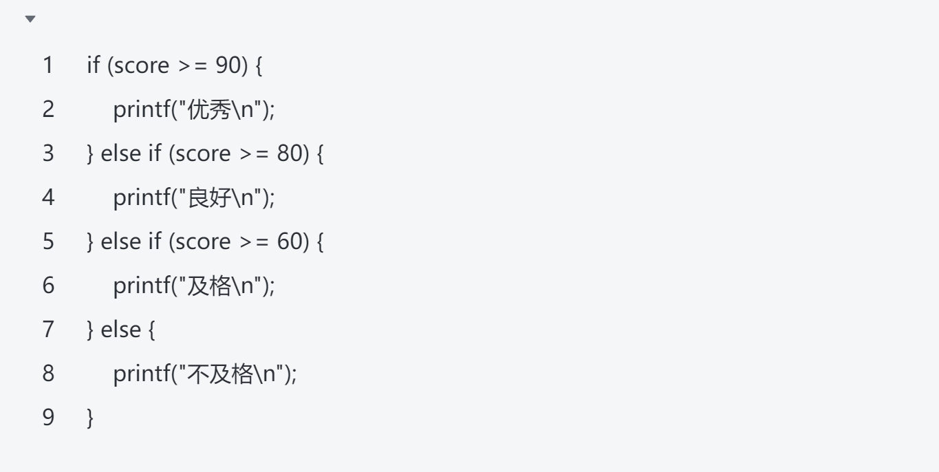 这种结构会从上到下依次判断条件,一旦匹配成功就执行对应代码并跳出整个分支,因此条件顺序必须合理(比如先判断高分段)。