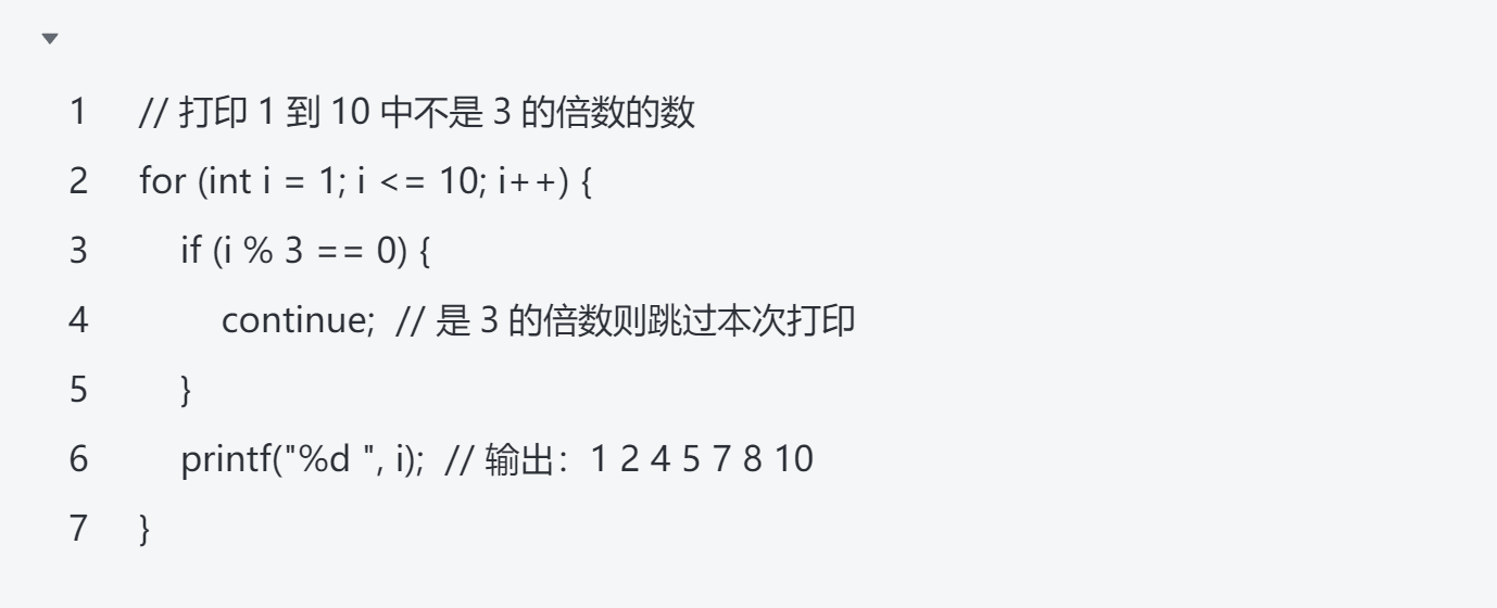 continue:跳过本次循环中剩余的代码,直接进入下一次循环的条件判断。