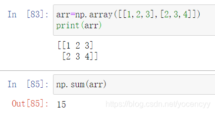 使用NumPy模块时,经常会用到numpy.sum()方法,比如计算一个多维数组(ndarray)的所有元素之和: