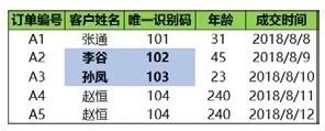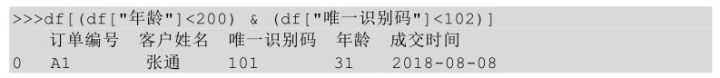 传入的条件还可以是多个,如下为选择的年龄小于200且唯一识别码小于102的数据。