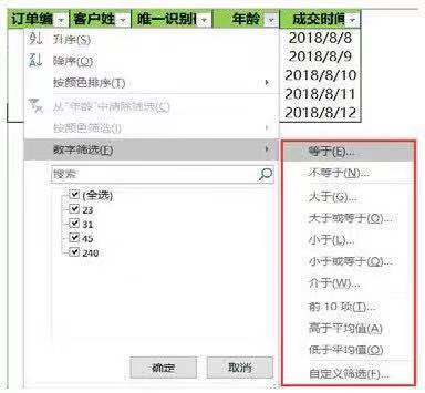 在Excel中我们直接使用筛选功能,将满足条件的值筛选出来,筛选方法如下图所示。