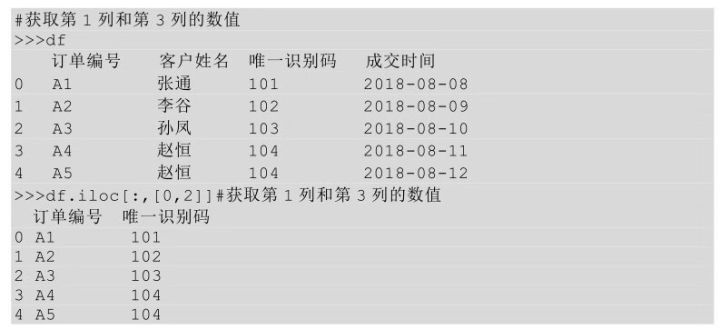 在上面的代码中,iloc 后的方括号中逗号之前的部分表示要获取的行的位置,只输入一个冒号,不输入任何数值表示获取所有的行;逗号之后的方括号表示要获取的列的位置,列的位置同样是也是从0开始计数。