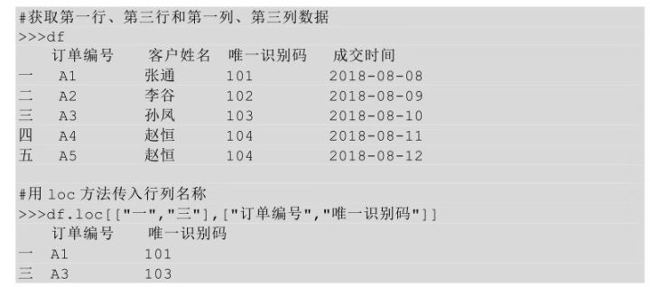 loc方法中的第一对方括号表示行索引的选择,传入行索引名称;loc方法中的第二对方括号表示列索引的选择,传入列索引名称。