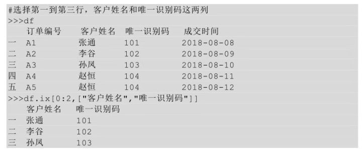 前面我们说过,如果是普通索引,就直接传入行或列名,用 loc 方法即可;如果是切片索引,也就是传入行或者列的位置区间,要用 iloc 方法。如果是切片索引+普通索引,也就是行(列)用切片索引,列(行)用普通索引,这种交叉索引要用ix方法。