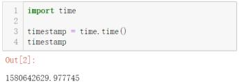 time库中只要有四个函数可以获得时间函数,其中time.time()方法就可以获得当前时间戳: