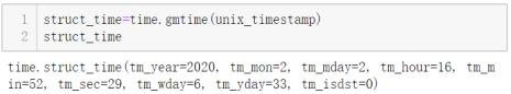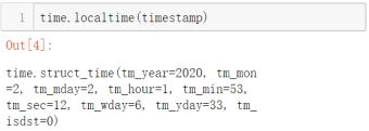 除此以外,time.localtime()还可以把unix时间戳转化为struct_time格式: