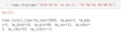 比如,如果有字符串时间'2020-02-01 16:49:11',要将其转化为struct_time对象:
