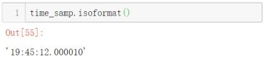 datetime.datetime对象的.isoformat()方法返回结果会有点“与众不同”,日期和时间之间多了一个字符‘T’: