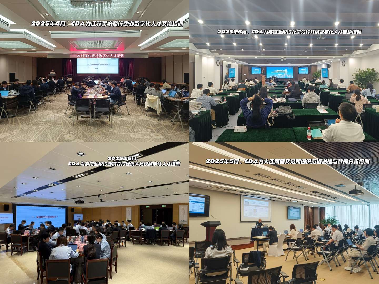 5月份,CDA为某商业银行西南分行开展的全员数字化赋能培训覆盖员工超过500人,实现了从前台业务到后台管理的全面能力提升。同期,CDA为某商业银行北京分行完成数字化人才数据分析专项培训,重点提升参训人员的数字思维与数据分析能力。
