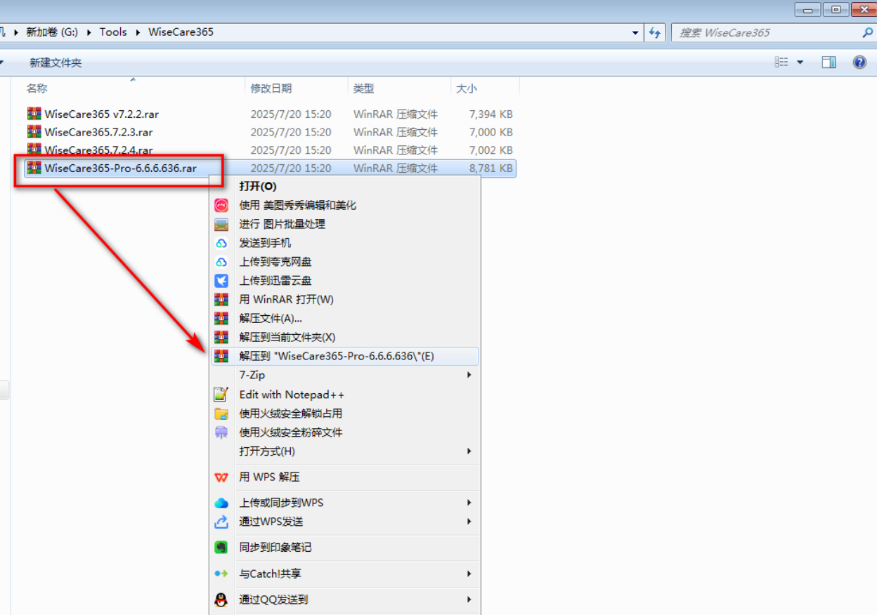 - 解压操作:右键点击压缩包,选择 “解压到指定文件夹”(建议解压至非系统盘,如 D 盘 \Tools 目录),避免解压到桌面或系统盘根目录(减少系统盘文件冗余)。