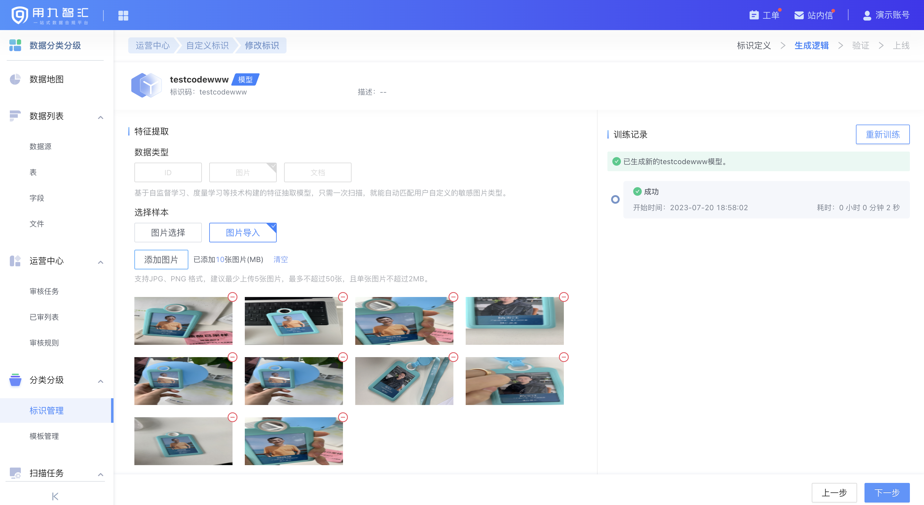当下市场存在的误区之四是数据合规治理就是做数据分类分级。在数据安全的体系下,数据发现可以认为就是数据分类分级,以满足数据管控的要求,但如果加入隐私保护的体系,我们认为数据合规治理的含义会更广,除了数据分类分级之外,他还需要引入主体识别的能力、留存期限的问题、处理目的等问题以满足主体权利响应、个人信息保护、数据留存管理、数据泄漏响应的合规要求,用九智汇在数据合规治理层面也做了非常多的创新探索,标识实验室便是其中之一,它以开放模型平台的方式帮助数据治理同学自主完成数据识别建模,加快数据合规治理效率。