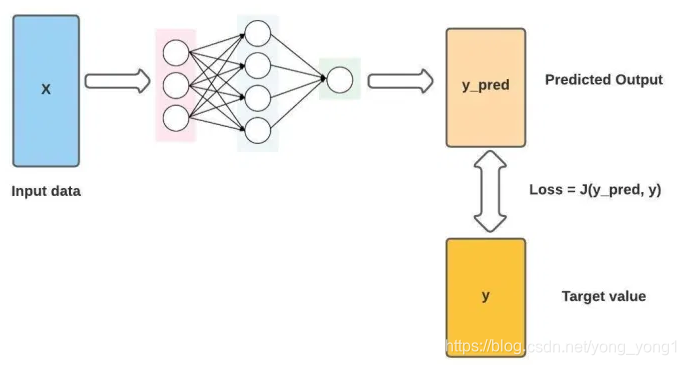 这个函数将通过比较预测输出和预期输出来确定模型的性能。如果y_pred和y之间的偏差很大,那么损失值就会很大。如果偏差很小或值几乎相同,它将输出一个非常低的损失值。因此,当模型在提供的数据集上进行训练时,需要使用合适的损失函数来惩罚模型。