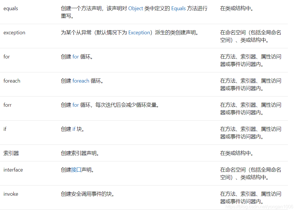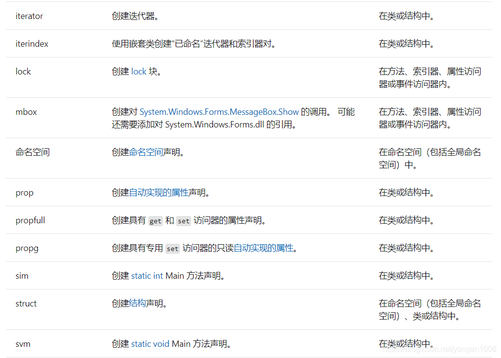 详见:https://docs.microsoft.com/zh-cn/visualstudio/ide/code-snippets?view=vs-2019