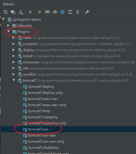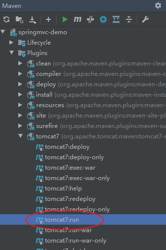 注意Tomcat7插件是用来运行项目的,右侧运行: