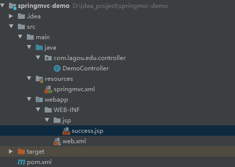 在java目录下新建包com.lagou.edu.controller,下面新建DemoController: