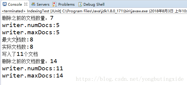 System.out.println("删除之前的文档数量:"+writer.numDocs());