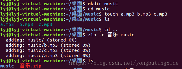 压缩:zip FileName.zip DirName
