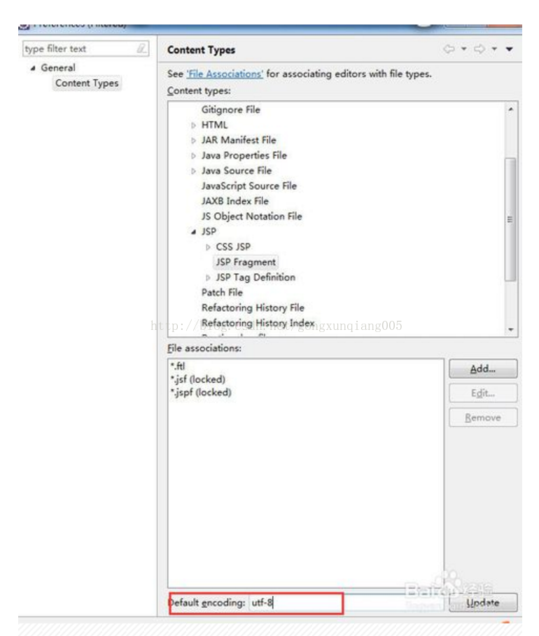 点击file types 右边的add按钮,出现如下图的对话框,输入*.ftl,如图: