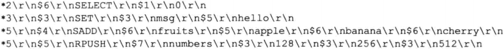 被写入AOF文件的所有命令都是以Redis的命令请求协议格式保存的,因为Redis的命令请求协议是纯文本格式,所以我们可以直接打开一个AOF文件,观察里面的内容。