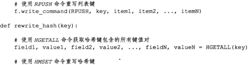 服务器为了保存当前list键的状态,必须在AOF文件中写入六条命令,如果用一条rpush list "C" "D" "E" "F" "G"命令来代替保存在AOF文件中的六条minglign,就可以将保存list键所需的命令从六条减少为一条了。