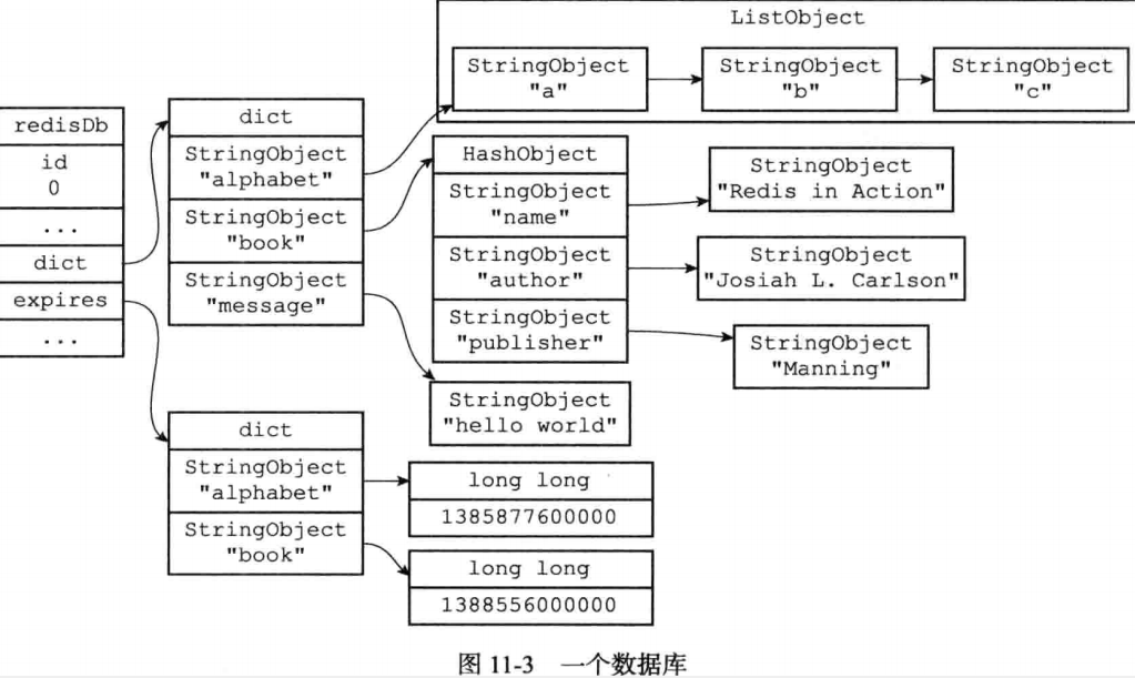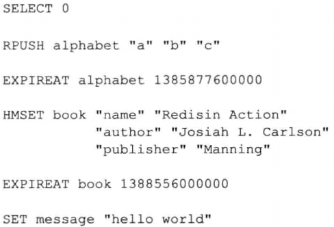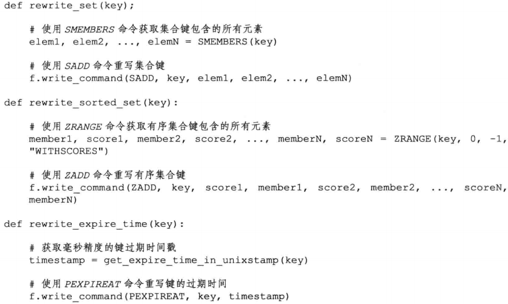 例如,对于图11-3所示的数据库,aof_rewrite函数产生的新AOF文件将包含以下命令: