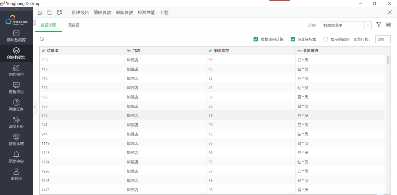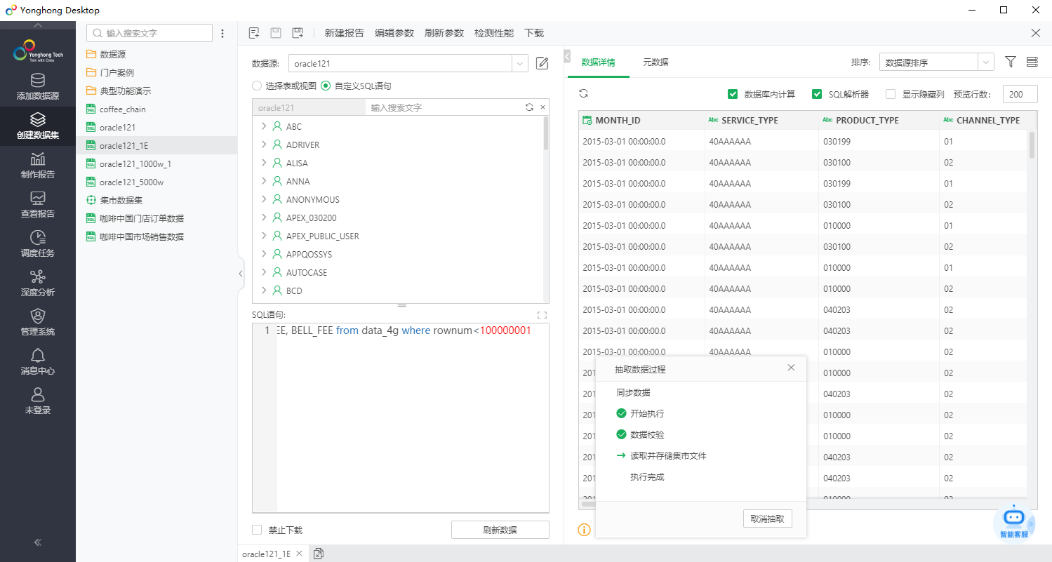 Yonghong Desktop是直接在数据集上点数据抽取,抽取数据过程如下: