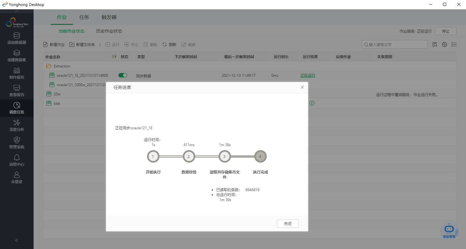 抽取任务在后台运行,也可以从调度任务里,去查看详细任务进度: