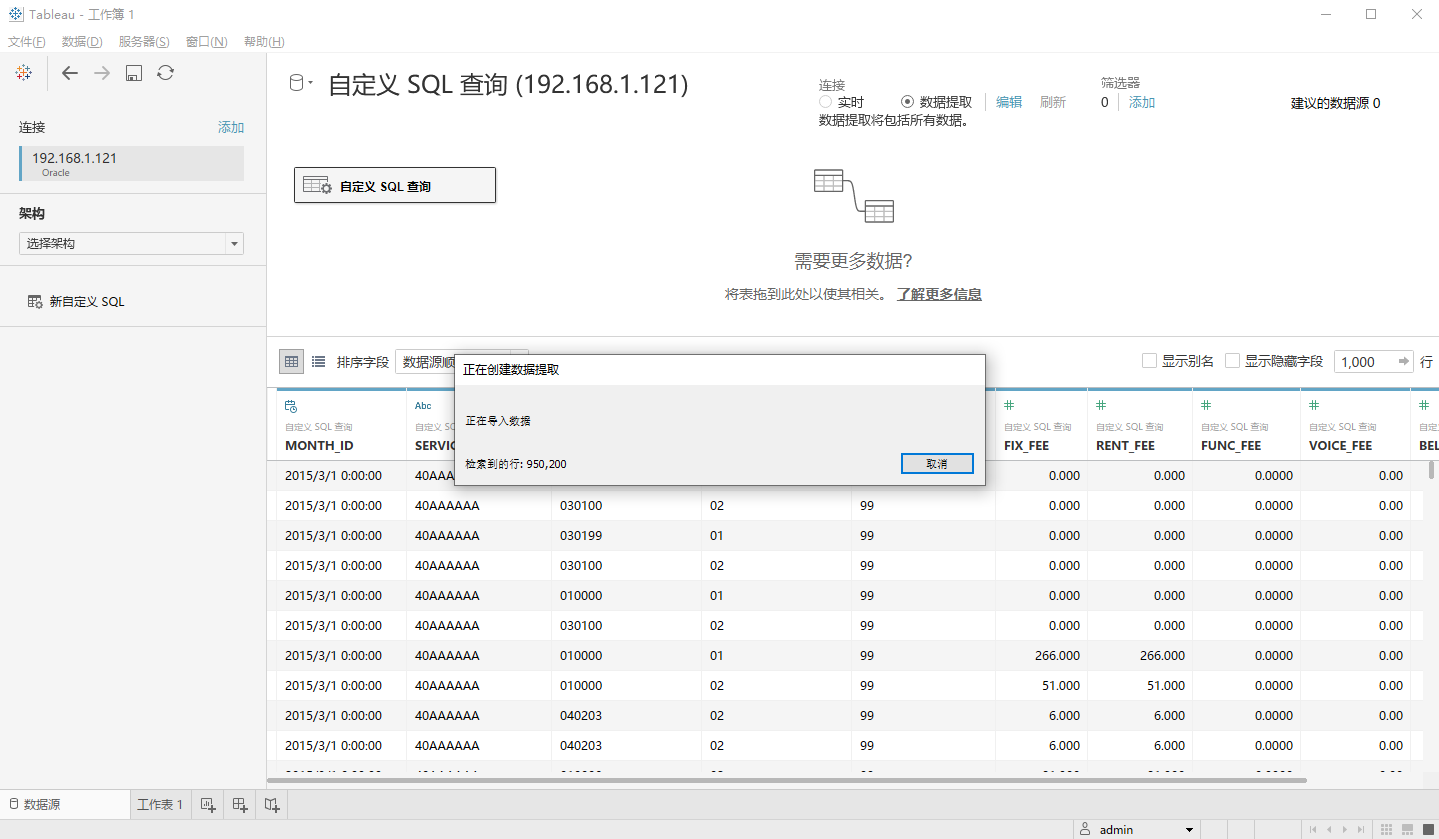 选择Tableau Desktop的数据提取,在切换到工作表的过程中,会弹出选择存储路径的窗口,数据以.hyper的文件形式存储下来。提取过程如下:不能点取消,抽取1亿的数据会花几十分钟时间,这期间只能等,不能操作客户端。