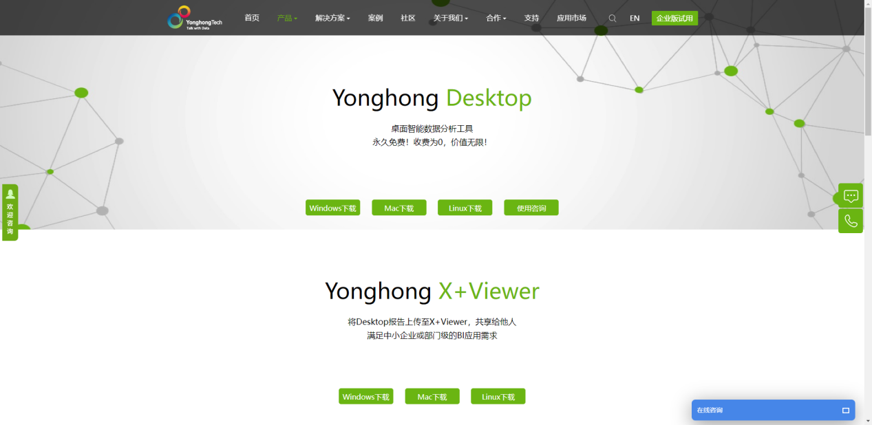 Yonghong Desktop全功能免费,不收取任何费用,真香!我可以在Desktop上制作报告,然后上传至免费的Yonghong X+Viewer(Server版)。X+Viewer和收费版的Z-Suite的最大区别在于只能查看报告不能编辑报告,且只有一个用户账号。想想,对很多部门和中小企业而言,搭建这样的系统基本就够了,而且还是全免费的。