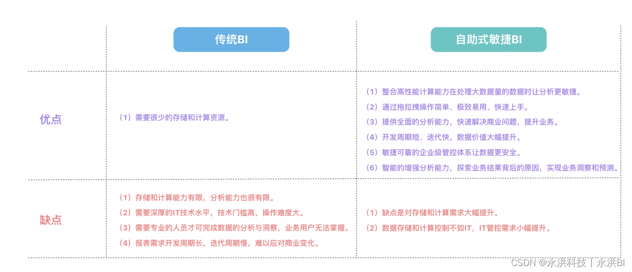 【一图看懂传统BI和自助式敏捷BI的差别】