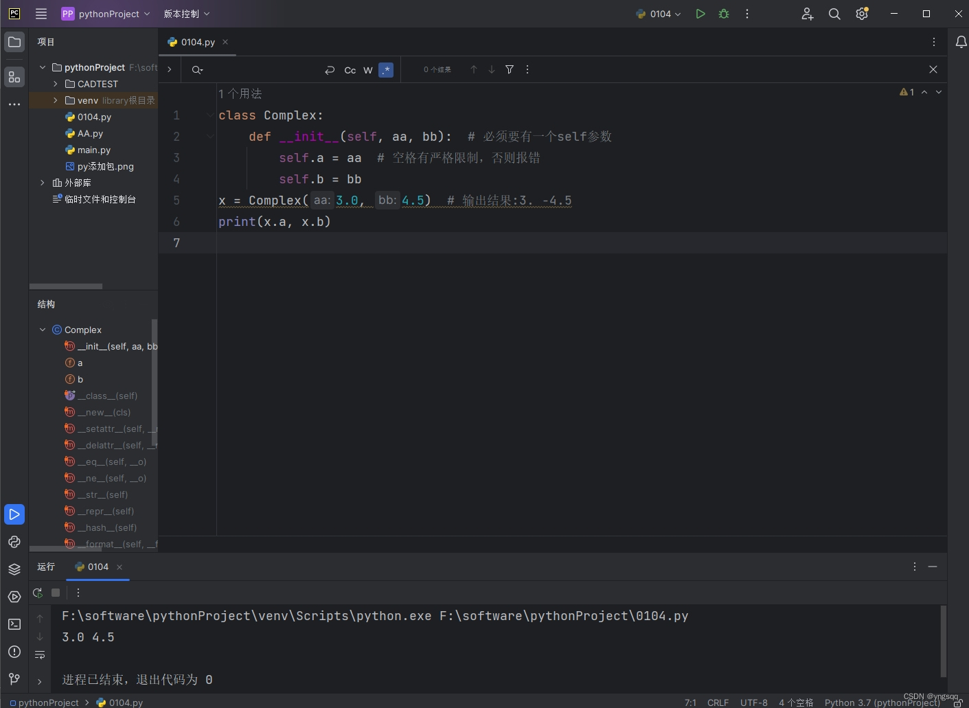 x = Complex(3.0, 4.5) # 输出结果:3. -4.5