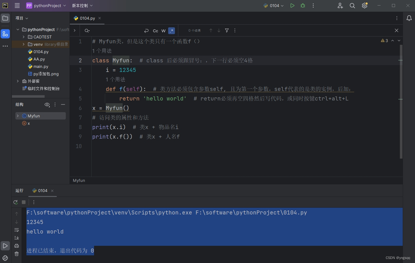class Myfun: # class 后必须跟冒号:,下一行必须空4格